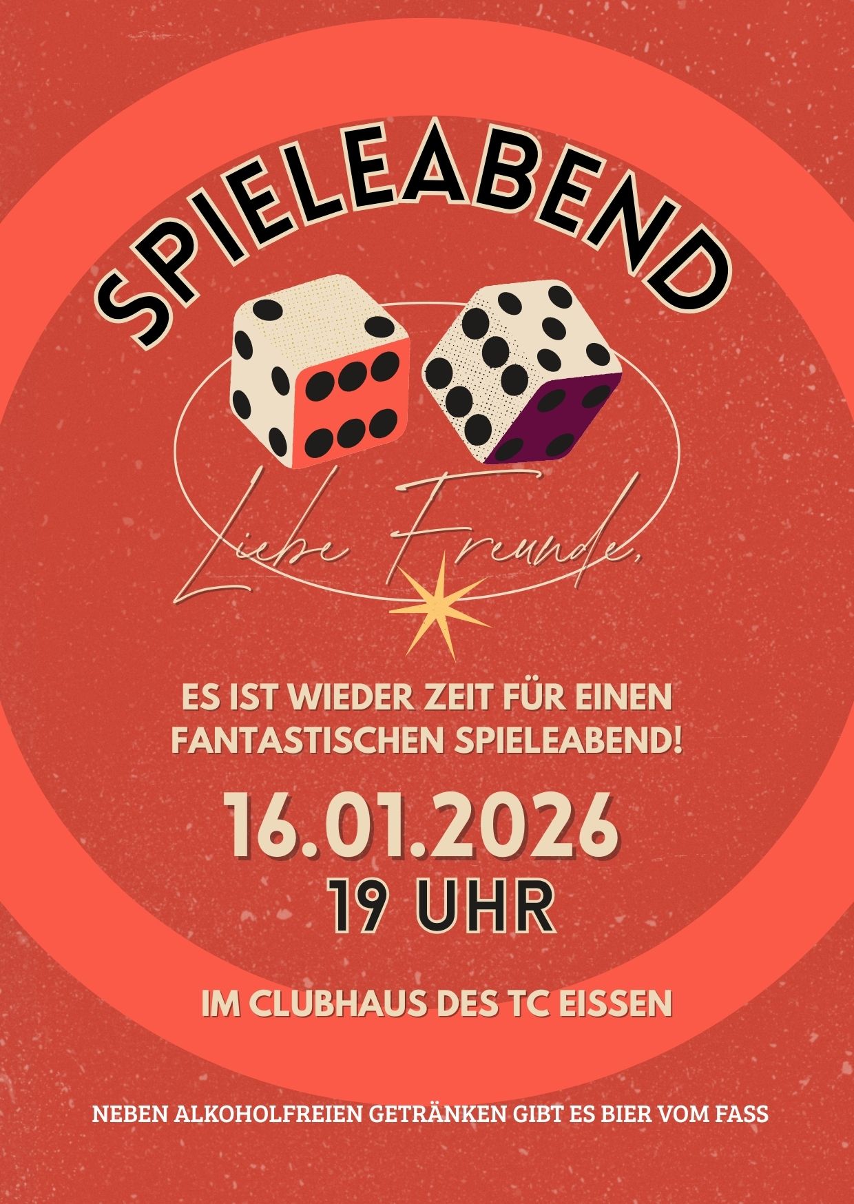 der TC Eissen veranstaltet jetzt Freitag im Clubhaus des TC einen Spieleabend. Eine gewisse Anzahl an Knobelbechern, Kartenspielen und ein Dartspiel sind vorhanden. Andere Spiele müssten von den Gästen mitgebracht werden.