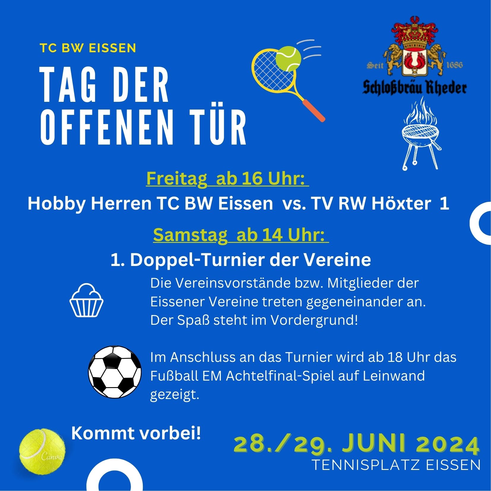 der TC Blau-Weiß Eissen e.V. lädt all seine Mitglieder/Innen und Freunde zum diesjährigen Saisonabschlussfest am Freitag, den 24.10.2025 im Clubhaus des TC ein. Beginn der Veranstaltung ist um 19:30 Uhr.